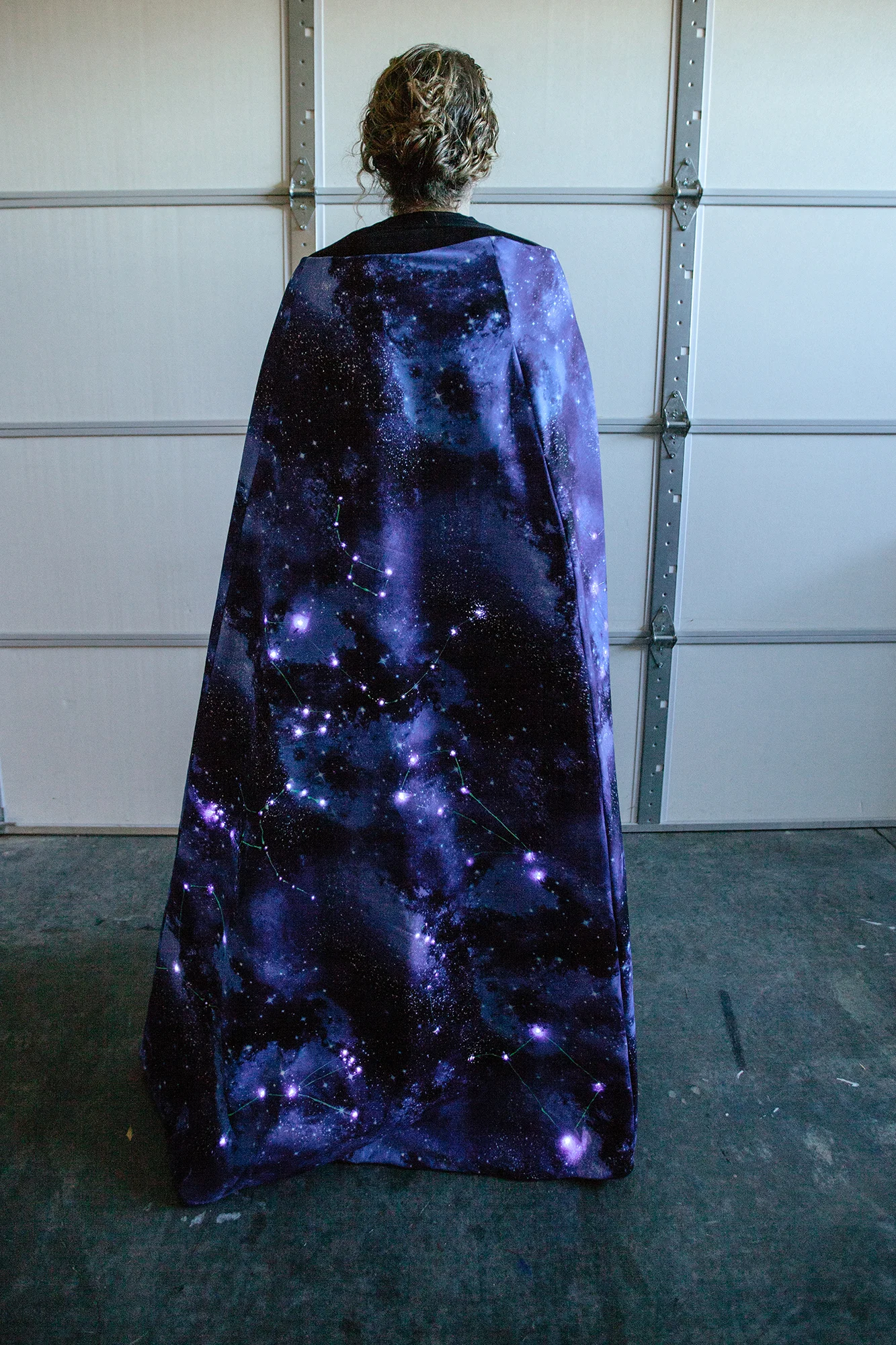 The Constellation Cloak is a Halloween costume designed for SparkFun Electronics by Melissa Felderman. Inside the cape are almost 200 sewable LEDS in patterns representing actual constellations seen in the Northern Hemisphere. The Sewable LEDs are divided into 10 different circuits. A DIY tutorial is available here. Photography by Chelsea Moll.